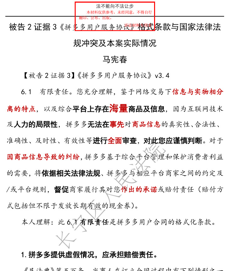 37. 《拼多多用户服务协议》形式上不是合法证据;内容有虚假宣传且违背国家法律法规的情况;拼多多出生即有过错